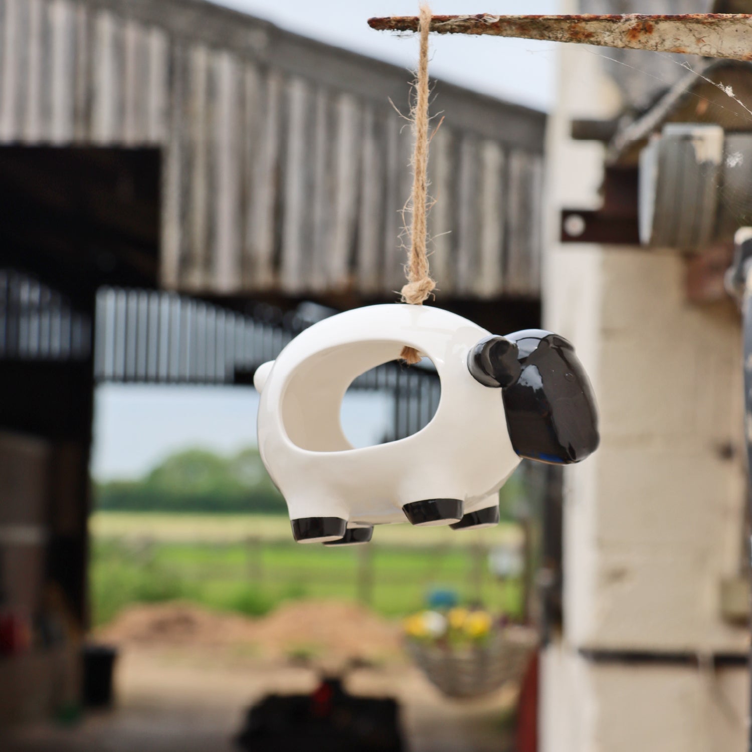 'Woolie' Hanging Ceramic Sheep - Bird Feeder