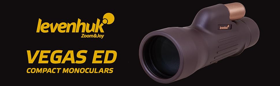 Levenhuk Vegas ED 10x50 Monocular features long eye relief that makes observations extremely comfortable, especially for those who wear glasses.