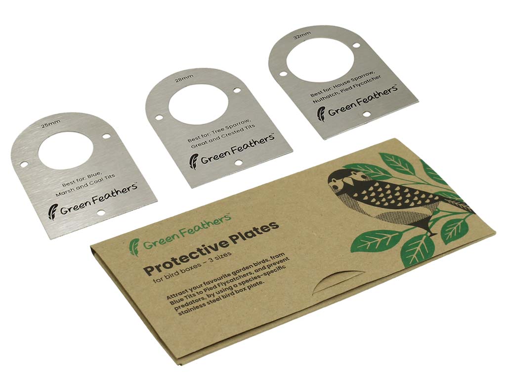 We’ve also included our stainless steel protective plates so you can protect and alter the size of the bird box’s entrance hole, and help decide which species of bird you’re likely to attract.